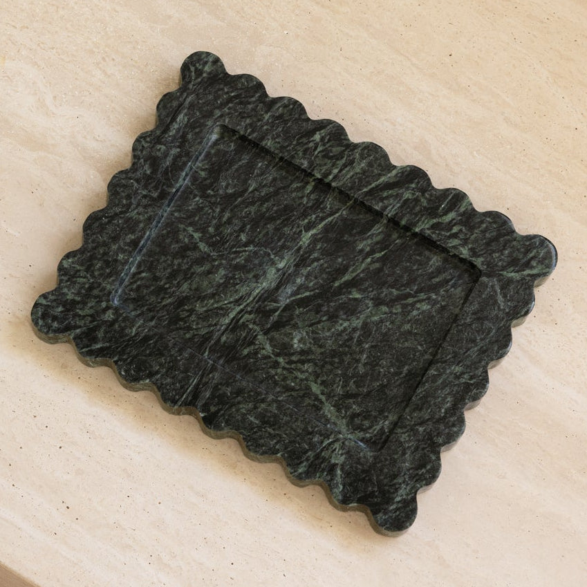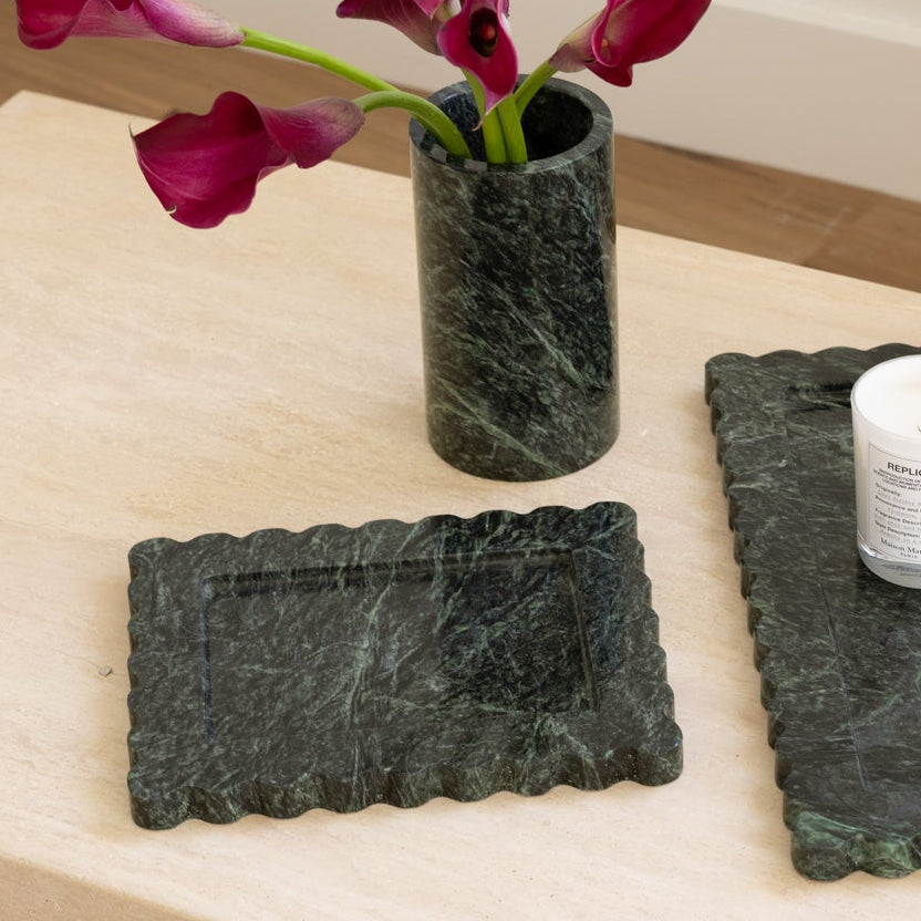 In Verde Saint Denis, the Flow Tray becomes a small but striking design moment. The deep green marble brings a vivid richness to the soft, sculpted form and the natural veining adds a quiet sense of movement.